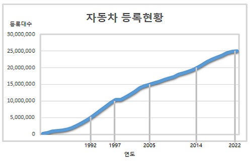 우리나라 자동차 등록대수가 2500만대를 돌파했다. 국민 2명 중 1명은 자동차를 보유하고 있는 셈이다.