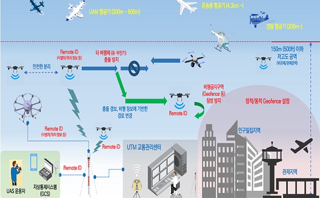 ‘K-드론시스템’은 드론의 비행계획승인, 위치정보 모니터링, 주변 비행체와의 충돌방지 기능을 하는 드론교통관리시스템이다.