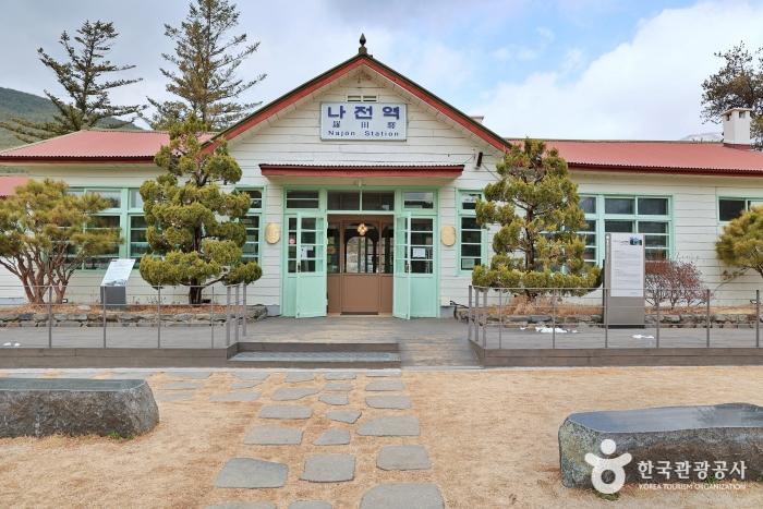 나전역은 민둥산역에서 구절리역까지 이어진 정선선 철길 위의 작은 간이역이다. 1970~80년대 탄광산업이 전성기를 이루던 시절엔 이용객이 많았지만, 90년대에 정선 탄전의 모든 탄광이 폐광되면서 급감했다. 후에 아우라지역과 구절리역의 레일바이크가 운행되었으나, 나전역은 방문하는 이가 없어 역무원이 배치되지 않은 무배차간이역이 되었다. 시간이 갈수록 낡고 잊혀져가던 나전역이 2021년, 묵은 때를 벗고 정선의 새로운 핫플레이스 ‘나전역카페’로 거듭났다.