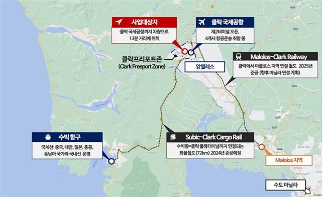 아울러, 사업대상지에서 동측으로 10분 거리에 클락국제공항이 위치하며, 클락-수빅항 간 화물철도와 마닐라-클락을 잇는 북남 통근철도가 건설되고 있어 교통 인프라도 우수하다.