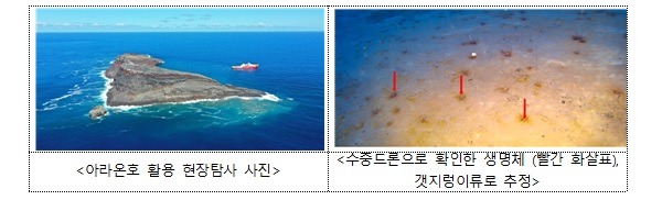 아울러 화산 폭발로 붕괴된 지형 가장자리에 수중드론을 보내 일부 생물들의 모습도 확인했다. 이는 화산폭발 이후 나타나는 생태계의 복원력을 보여준다.