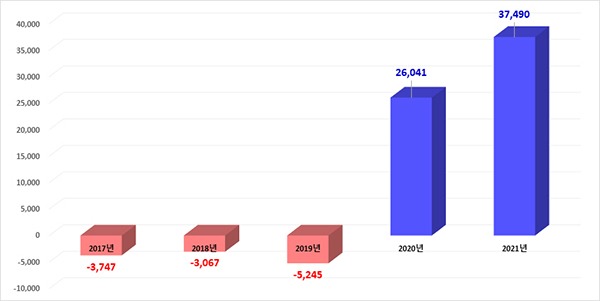 지난 2020년 처음으로 흑자를 달성한 의료기기 무역수지가 지난해에도 전년 대비 약 44% 상승한 3조 7489억원을 기록했다.