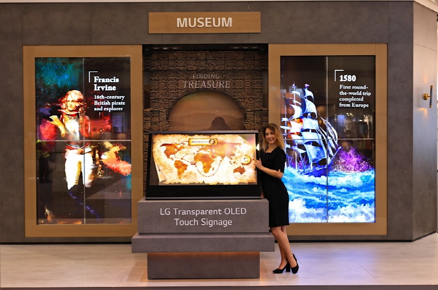 전시관 입구 리셉션에는 투명 올레드가 관람객들을 맞이한다. 투명 올레드는 화면과 화면 너머를 동시에 볼 수 있어 지하철, 사무실, 박물관, 호텔 등 고객 상호작용이 중요한 공간에서 특히 활용도가 높다. LG전자는 부스 안쪽에 투명 올레드 자동문을 설치하는 등 올레드 기술 리더십을 기반으로 한 미래 공간의 청사진을 제시한다.