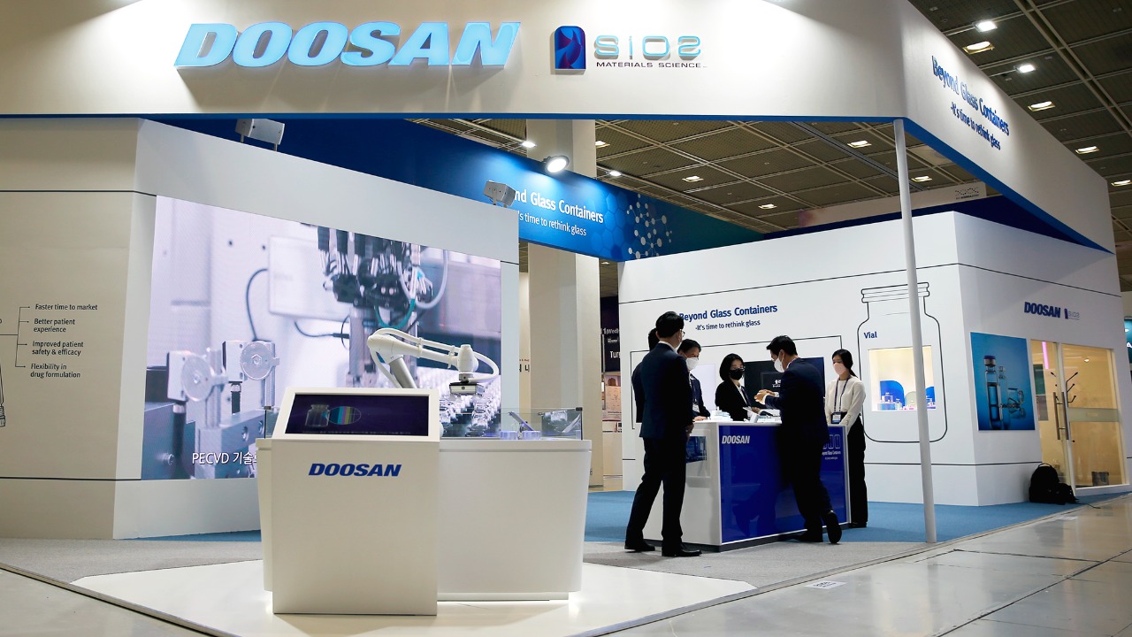 ㈜두산이 국내 최대 바이오 전시회에 참가해 의약품 보관용 첨단 소재 기술을 선보인다.