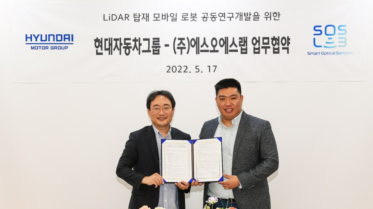 현대자동차그룹은 17일(화) 의왕연구소에서 현대자동차그룹 현동진 로보틱스랩장, 에스오에스랩 정지성 대표이사 등 양사 관계자들이 참석한 가운데 에스오에스랩과 ‘모바일 로봇용 라이다 공동개발을 위한 업무협약(MOU)’을 체결했다고 밝혔다.