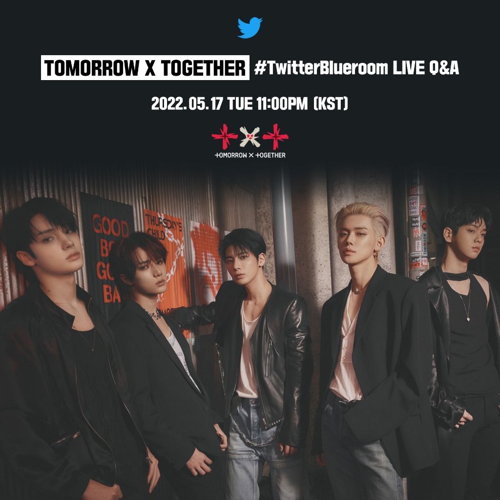투모로우바이투게더는 오늘(17일) 오후 11시 공식 트위터 채널을 통해 미니 4집 ‘minisode 2: Thursday's Child’ 발매 기념 ‘블루룸 라이브’를 진행한다. 투모로우바이투게더는 신보와 관련한 퀴즈 풀이에 이어 사전에 전 세계 팬들로부터 받은 질문에 답변하는 시간을 갖는다. 다섯 멤버는 Q&A를 진행하면서 ‘깜짝 미션’을 수행, 짜릿한 재미를 선사할 예정이다.