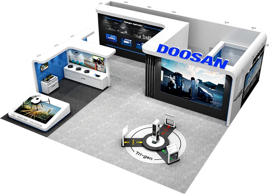 두산은 전시회에서 두산퓨얼셀, ㈜두산 퓨얼셀파워BU, 두산모빌리티이노베이션(이하 DMI)을 앞세워 수소연료전지를 활용한 다양한 제품과 솔루션을 소개한다.