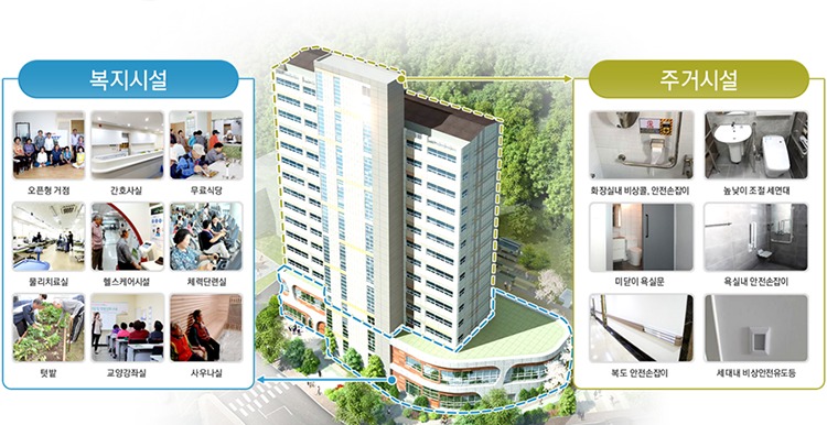 고령자복지주택은 고령자 주거안정을 위해 무장애설계가 적용된 임대주택과 사회복지시설을 함께 조성하는 사업으로, 새 정부 국정과제에 포함하여 적극 추진하고 있다.