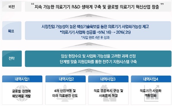 6년간 1조2000억원 규모의 예산을 투입하고 연구개발 사업단을 구성해 한국 의료기기 산업 경쟁력을 강화하겠다는 방침이다.