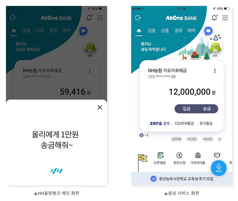 NH농협은행의 모바일 뱅킹 앱 ‘NH올원뱅크’에 ‘누구’ 탑재