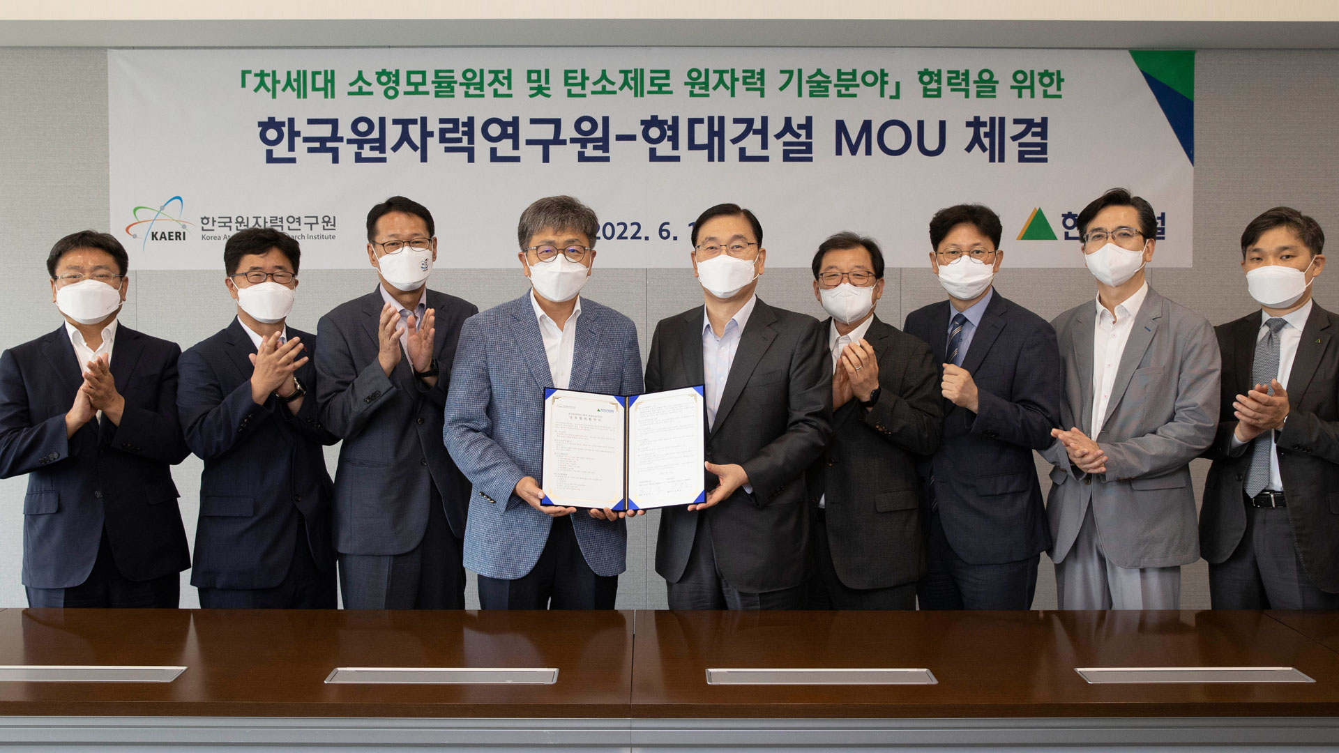 현대건설은 한국원자력연구원과 6월 10일(金), ‘소형모듈원전, 원자력 수소생산 및 원전해체 기술 개발 협력을 위한 업무협약(MOU)’을 체결했다.