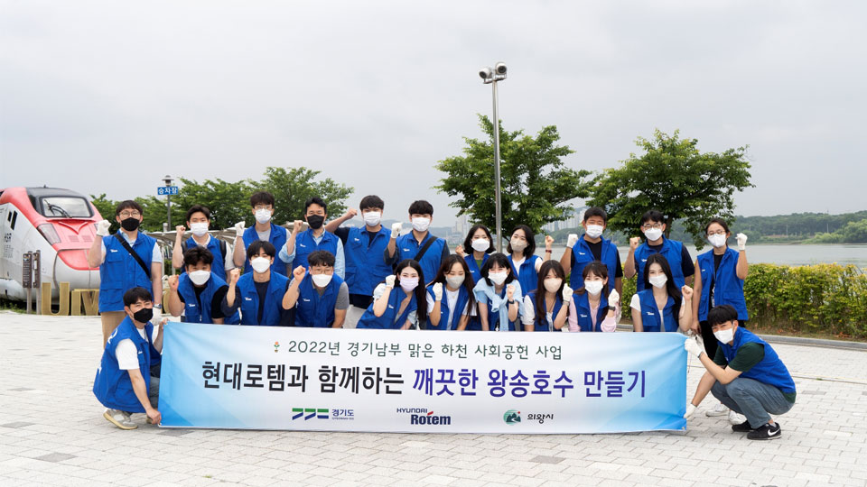 이번 행사는 수질 관리를 위한 민관 협력을 강화하고자 경기도수자원본부에서 주관하는 ‘경기남부 맑은 하천 사회공헌 사업’의 일환이다. 이 사업을 통해 현대로템은 본사 및 연구소가 위치한 의왕시 관내 하천에서 이번 행사와 같은 환경정화 활동을 꾸준히 진행할 계획이다.