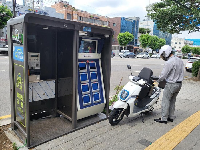 서울시가 노후 공중전화부스를 전기오토바이의 방전된 배터리를 완충된 배터리로 교체할 수 있는 전기오토바이 배터리 교환형충전소로 변경해 이용자들의 충전 편의 향상에 나선다고 밝혔다.