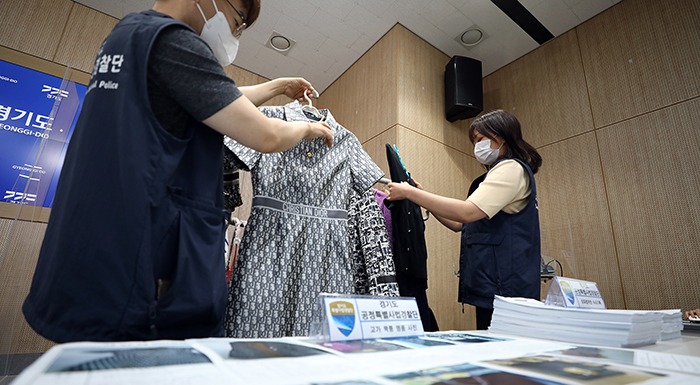 김영수 경기도 공정특별사법경찰단장은 22일 경기도청에서 기자회견을 열고 “5월 1일부터 6월 10일까지 40일간 위조상품, 이른바 짝퉁 제품에 대한 제조와 판매 행위를 집중 수사한 결과 13명을 상표법 위반 혐의로 형사입건하고 2,072점 14억2천만 원 상당의 물건을 압수했다”고 밝혔다.