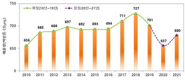 이번 배출량은 확정 통계보다 1년 앞서 잠정 산정한 결과로 정책수립·운영, 온실가스 관련 분석 등에 활용될 예정이다.