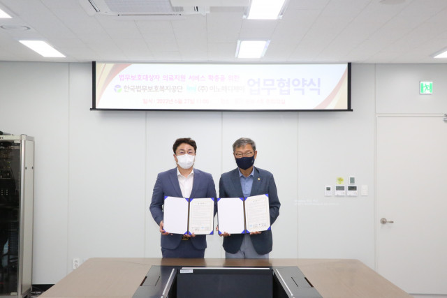 한국법무보호복지공단은 6월 27일(월) 법무보호 대상자들의 의료 지원 서비스 확충을 위해 병·의원 전문 마케팅 전문 회사 이노메디제이와 업무 협약식을 개최했다고 28일 밝혔다.