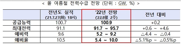정부는 이에 따라 전력수요가 급증해도 안정적 공급이 가능하도록 9.2GW 수준의 추가 예비 자원을 확보했다고 설명했다.