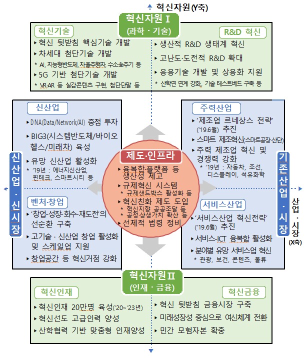 정부가 그동안 역점적으로 추진해 왔던 혁신성장의 틀도 재정리해 일관성있게 추진하겠다는 의지도 밝혔다.