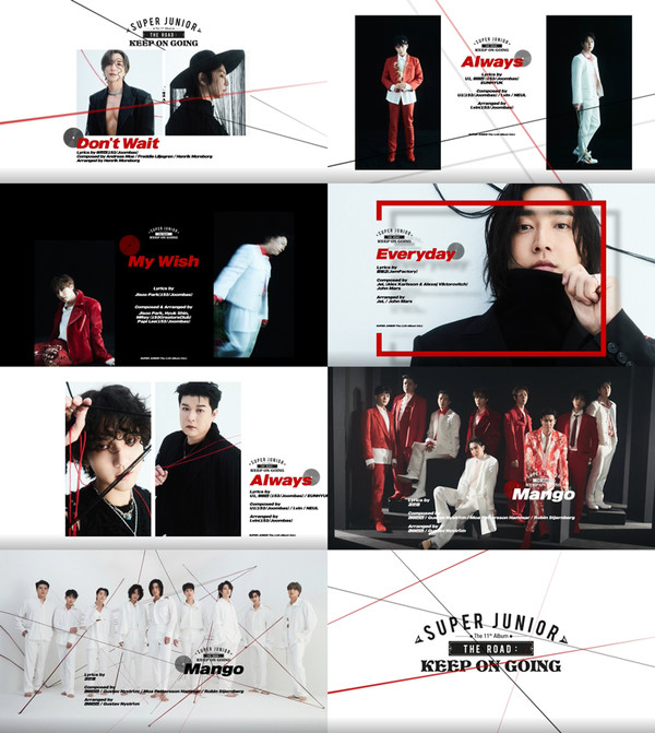 'The Road: Keep on Going'에는 타이틀곡 'Mango (망고)'와 지난주 뮤직비디오로 선공개된 'Don't Wait (돈 웨잇)'을 비롯해 'My Wish (마이 위시)', 'Everyday (에브리데이)', 'Always (올웨이즈)'까지 완성도 높은 총 5곡이 수록된다. 5곡을 통해 슈퍼주니어의 독보적인 개성과 새로운 시도를 모두 만날 수 있을 것으로 기대된다.