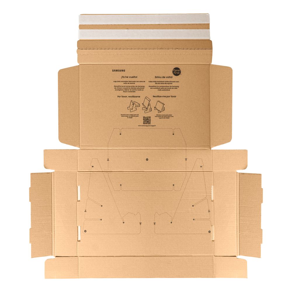 특히 친환경 소재를 활용한 제품 배송 박스는 사용 후 다른 용도로도 활용할 수 있도록 ‘업사이클링 디자인’을 적용했다. 삼성전자는 박스 내부의 QR 코드를 통해 배송 박스를 모바일 기기 거치대로 쉽게 조립할 수 있는 동영상을 제공한다.