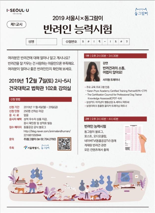 서울시-㈜동그람이, 제1회 ‘반려인 능력시험’ 개최 1부 강의, 2부 시험 진행