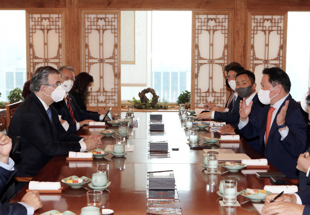 SK그룹은 7일 최 회장이 전날 서울 종로구 SK서린빌딩에서 마르셀로 에브라르드(Marcelo Ebrard) 멕시코 외무장관을 만나 SK의 4대 핵심 사업군인 △그린 비즈니스(배터리 등) △바이오 △디지털 △반도체 및 첨단소재 등의 기술력을 소개하며 멕시코와의 세부 협력 방안에 대해 논의했다고 밝혔다.