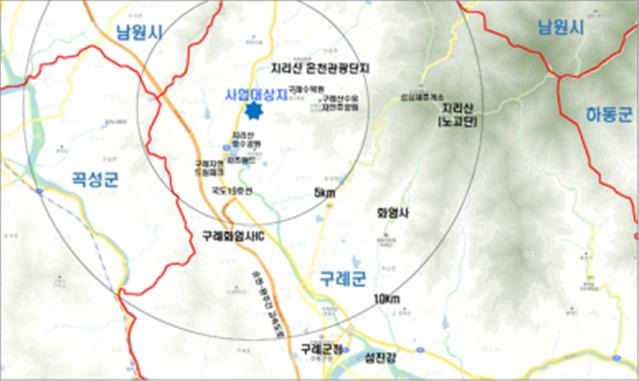 전남구례 귀농귀촌 주택단지 인근에는 지리산호수공원, 지리산온천관광단지 등이 위치하고 순천완주고속도로 이용 시 광주광역시에 1시간 이내에 도달할 수 있다.