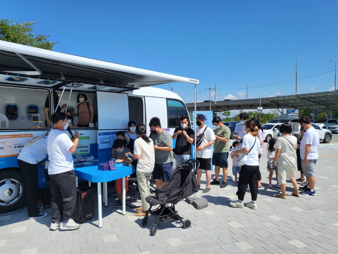 찾아가는 경기관광 홍보관은 비행기 모양의 특수 제작된 차량으로 체험, 영상, 안내물 등을 활용해 도내 관광지를 알리는 이동식 홍보관이다.