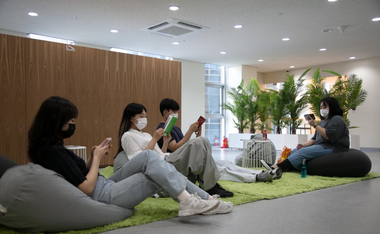보고, 듣고, 즐기는 ‘미디어룸’ : 일상의 영역을 벗어나 독립된 공간에서 자유롭게 영화를 보거나 게임을 즐기며 스트레스를 해소하거나 면접이나 발표 연습과 같은 자기계발을 위한 공간이다.