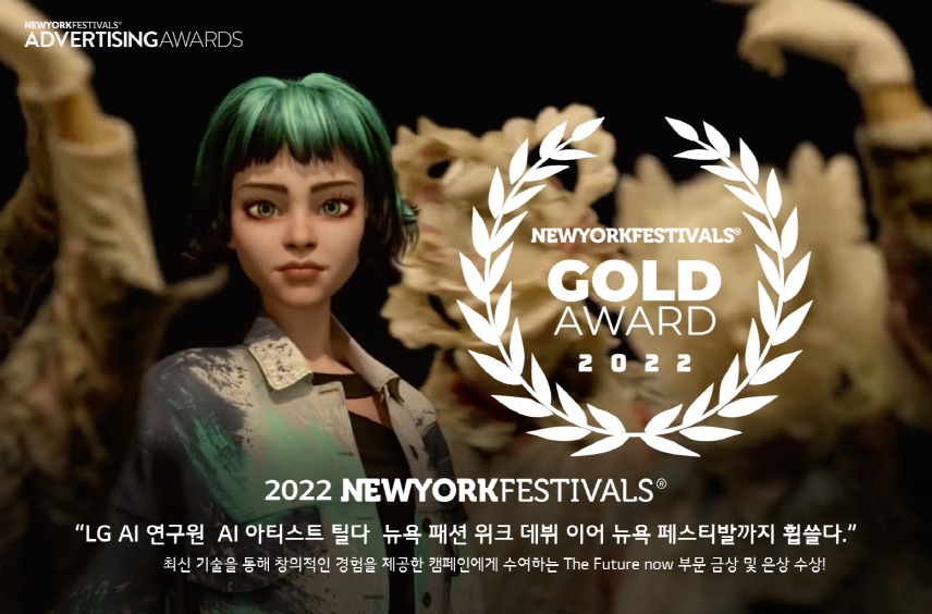 LG의 AI 아티스트 ‘틸다(Tilda)’가 뉴욕 현지시간 지난 15일 ‘2022 뉴욕 페스티벌(New York Festivals International Advertising Awards)’에서 ‘The Future Now’ 부문 금상과 은상을 동시에 수상하는 영예를 안았다.
