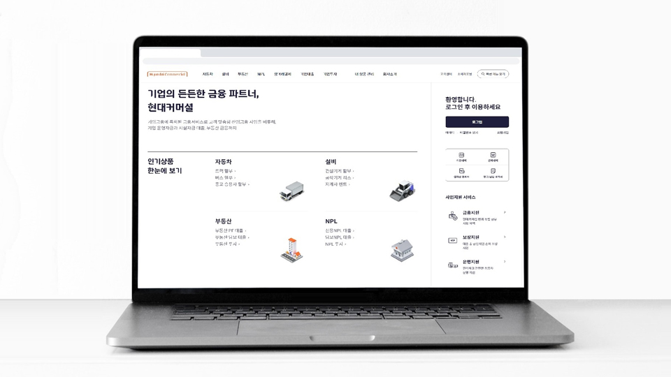 우선 메인 페이지는 현대커머셜의 금융 상품을 한눈에 볼 수 있도록 바꼈다. 또한, 상품 페이지는 고객들이 이해하기 힘들었던 전문 용어들을 자동차, 설비, 부동산 등으로 직관적으로 변경하고, 47종의 3D 일러스트를 활용해 상품 특징을 쉽게 알아볼 수 있도록 시각화 했다.