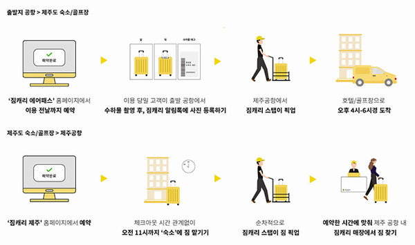도착공항은 기존과 같이 가족·골프여행 수하물 배송 수요가 많은 제주공항 한 곳으로 유지하지만 출발공항은 김포공항을 포함해 청주·양양·김해·대구·광주공항 등 6곳 지역별 거점공항까지 늘어난다.