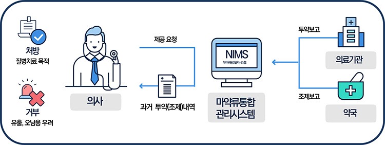마약류 의료쇼핑 방지 정보망은 과다․중복 처방 등 마약류의 오남용이 우려되는 경우 처방․투약하지 않을 수 있도록의사가 환자의 마약류 투약 이력을 진료․처방 시 확인․조회할 수 있는 서비스입니다.