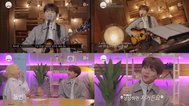 B tv ‘스튜디오 음악당(이하 음악당)’ 12회 게스트로 출연한 정세운은 감미로운 목소리와 스윗한 매력으로 사랑받는 대세 싱어송라이돌로, 이날 역시 수준급 기타 연주와 라이브로 시선을 사로잡았다.