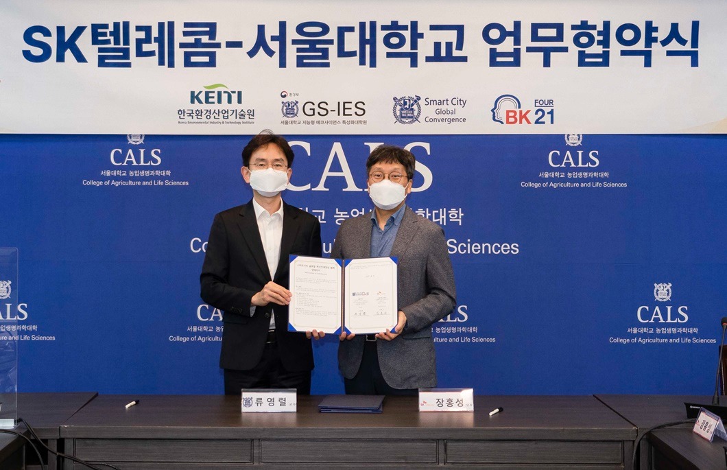SKT는 28일 오후 서울대학교 농업생명과학대학에서 스마트시티 글로벌 융합 혁신인재양성 교육연구단 및 지능형 에코사이언스 특성화 대학원 두 곳과 각각 협약을 체결했다.