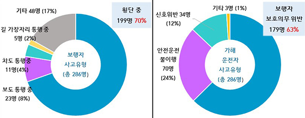특히 가해 운전자 10명 중 6명이 횡단보도 앞 일시 정지 등 보행자 보호 의무를 위반한 것으로 분석돼 사람을 우선해 운행할 수 있도록 각별한 주의가 요구된다.