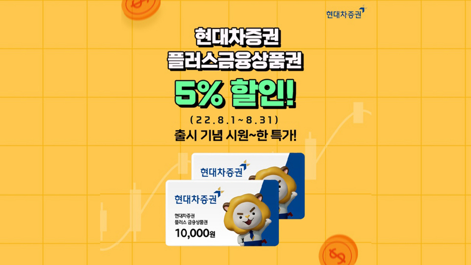 현대차증권이 주식, 펀드 등을 살 수 있는 ‘플러스금융상품권’ 출시를 기념해 할인 이벤트를 진행한다.
