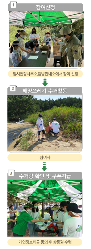 공단은 탐방객이 국립공원에서 제공한 봉투에 해양 쓰레기를 수거해 오면 음료로 교환 가능한 5000원 상당의 지역상품권 또는 모바일상품권을 지급할 방침이다. 시범운영 기간 동안에는 선착순 3000명까지 운영한다.