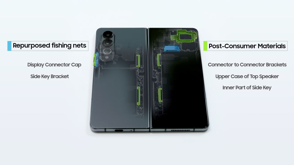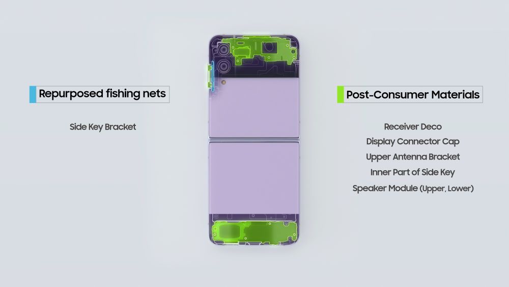 이번에 공개된 폴더블폰과 웨어러블 신제품에는 모두 재활용 소재가 적용된 부품이 탑재됐다.