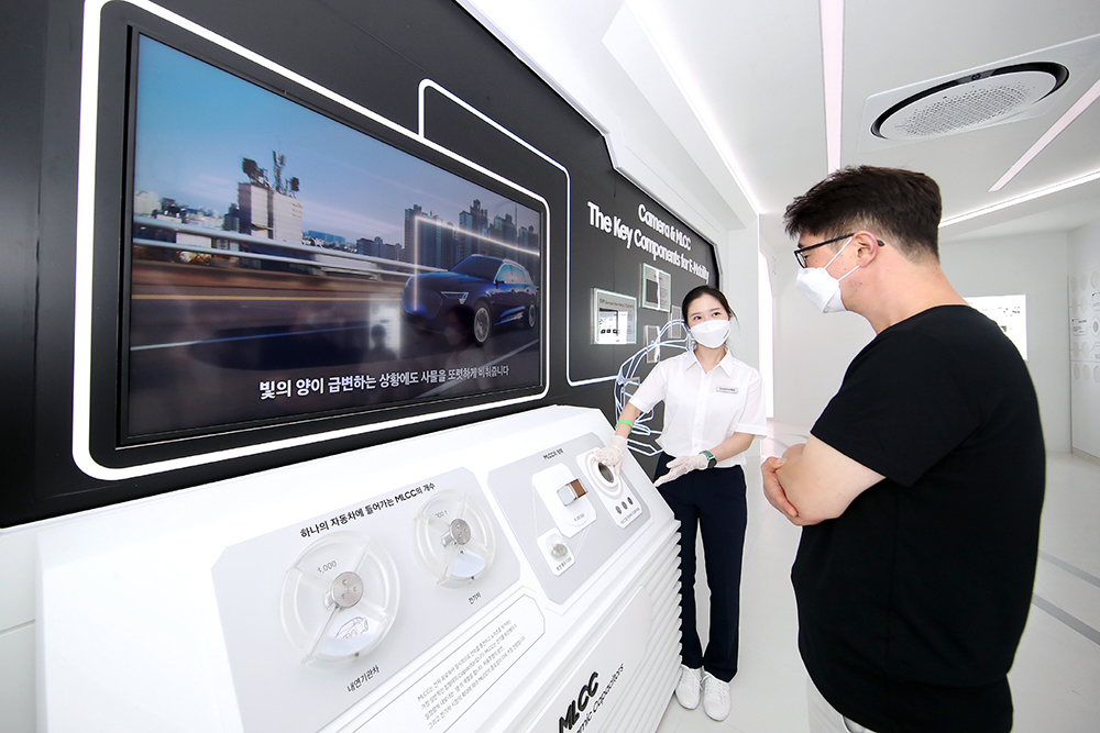 삼성전기는 전기차와 자율주행 자동차의 확대로 탑재가 늘고 있는 초고용량 전장용 MLCC와 다양한 기능의 카메라모듈을 전시했다. 독자개발 유전체 등 핵심기술이 적용된 초고용량 전장용 MLCC는 자동차 내부의 가혹한 환경에서도 고성능 반도체에 에너지를 빠르고 안정적으로 공급해준다.