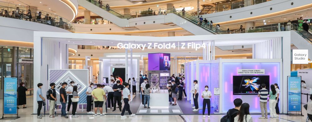 삼성전자는 전국 주요 삼성 디지털프라자와 영등포 타임스퀘어 등 약 60여 곳에서 ‘갤럭시 Z 플립4’와 ‘갤럭시 Z 폴드4’를 더욱 특별하게 체험해볼 수 있는 ‘갤럭시 스튜디오’를 순차적으로 운영한다. 방문객들은 신제품 체험폰을 직접 들고 다니며 폴더블의 다양한 각을 활용해 패션 화보의 주인공처럼 촬영해보는 ‘런웨이존’과 자신만의 인싸 숏폼 동영상 촬영을 해보는 ‘숏폼 프로덕션존’을 필두로 S펜 공작소, 커꾸·폰꾸 소품샵, 최신 웨어러블을 즐길 수 있는 나만의 바이브존 등 다채로운 경험 공간들로 구성되어 있어 ‘갤럭시 Z플립4’와 ‘갤럭시 Z폴드4’, ‘갤럭시 워치5 시리즈’, ‘갤럭시 버즈2 프로’ 등의 새로운 혁신 기능들을 더욱 매력적으로 경험할 수 있다.