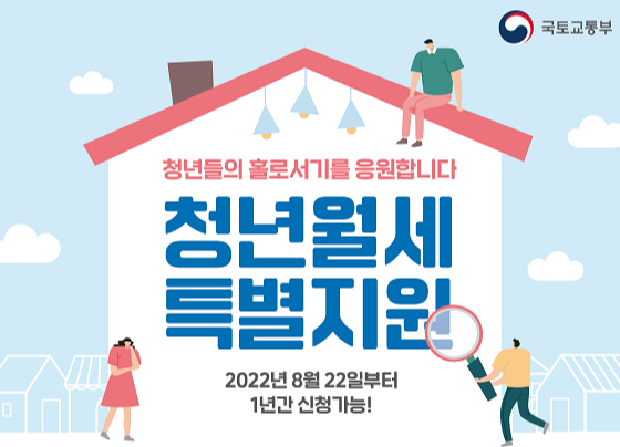 국토교통부는 지난 7월 발표한 주거분야 민생안정 대책의 후속조치로 오는 22일부터 ‘청년월세 특별지원’ 신청을 받는다고 17일 밝혔다.