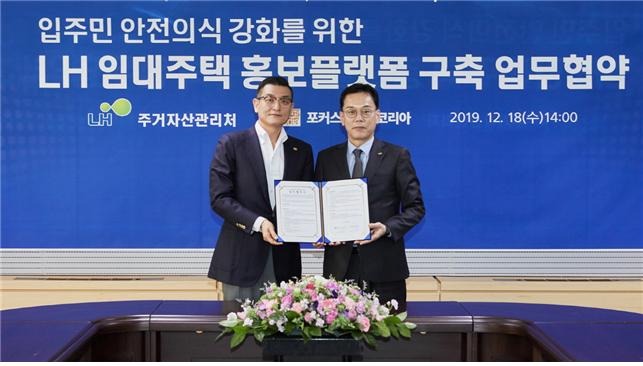 LH는 포커스미디어코리아(주)와 함께 LH 임대주택단지에 입주민 안전의식 강화를 위한 ‘홍보플랫폼’을 구축하기로 하고 지난 18일 업무협약을 체결했다고 밝혔다.