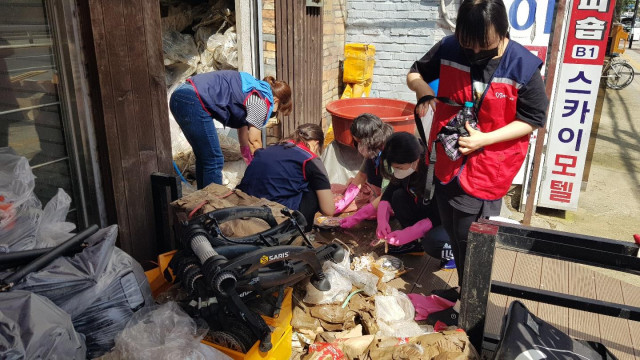 앞서 8월 16일에는 재단 직원들이 성금 기탁과는 별도로 수해 피해 지역을 찾아 수해 복구 활동을 도왔다.