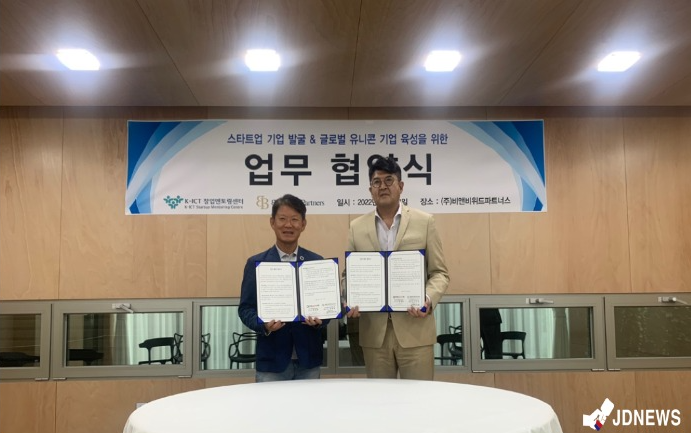 사업 컨설팅 및 투자사인 (주)비앤비위드파트너스가 지난 23일 한국 청년 기업가 정신재단 K-ICT 창업 멘토링센터와 창업기업 발굴·육성을 목적으로 업무 협약을 체결했다.