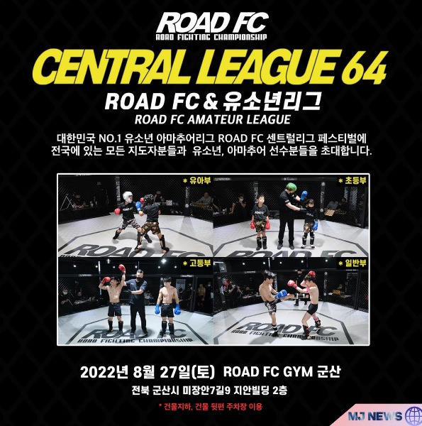 국내 최대 규모 아마추어 MMA 무대 '로드 FC 센트럴리그 64' 대회가 8월 27일 전라북도 군산시에 위치한 로드짐 군산(관장 김금천)에서 열린다.