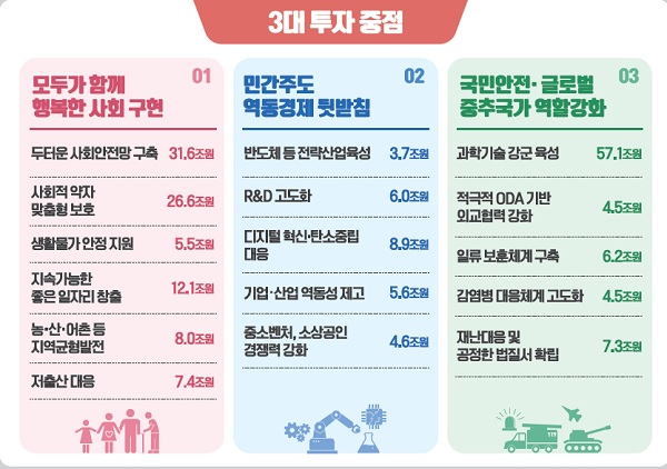 ◆ 투자중점…국정과제 이행, 서민·사회적 약자 지원 등에 투자