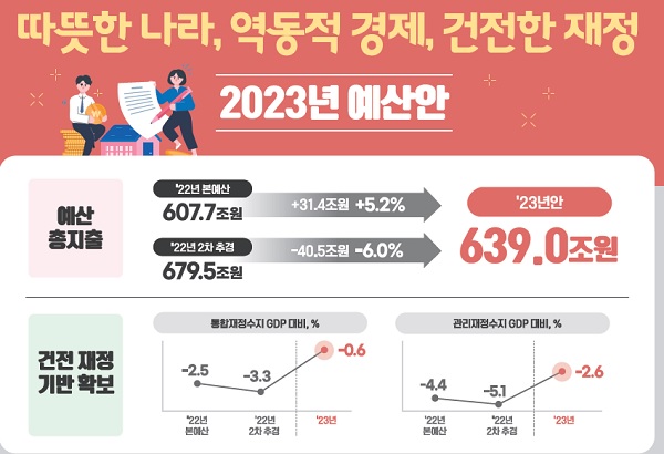 복합 경제 위기 상황에서 재정기조를 확장재정에서 건전재정으로 전환하면서도 국정과제 이행 등 ‘해야 할 일은 하는 예산’으로 편성된 것이다.