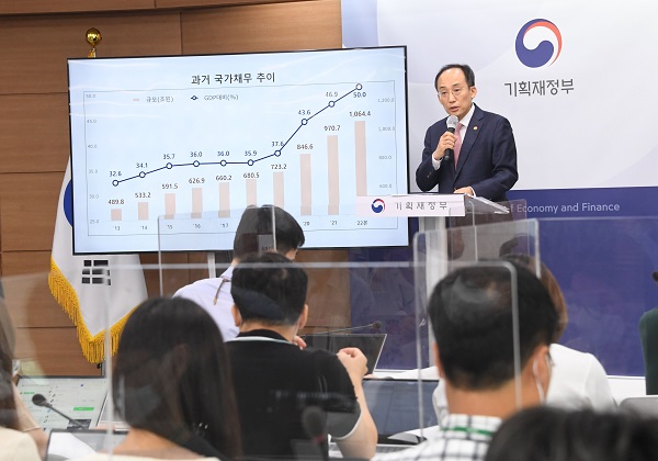 2019년 723조 2000억원이던 국가채무는 코로나19 위기를 거치며 2020년에는 123조 4000억원, 2021년에는 120조 6000억원, 2022년(2차 추경 기준)에는 101조 6000억원 각각 늘어 1068조 8000억원에 달했다.