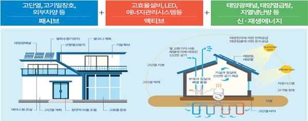 한편 국토부와 산업부는 제로에너지건축물 보급 활성화를 위해 제로에너지건축물 인증 등급에 따라 건축기준(용적률) 완화, 취득세 감면 등 혜택을 제공하고 있다.